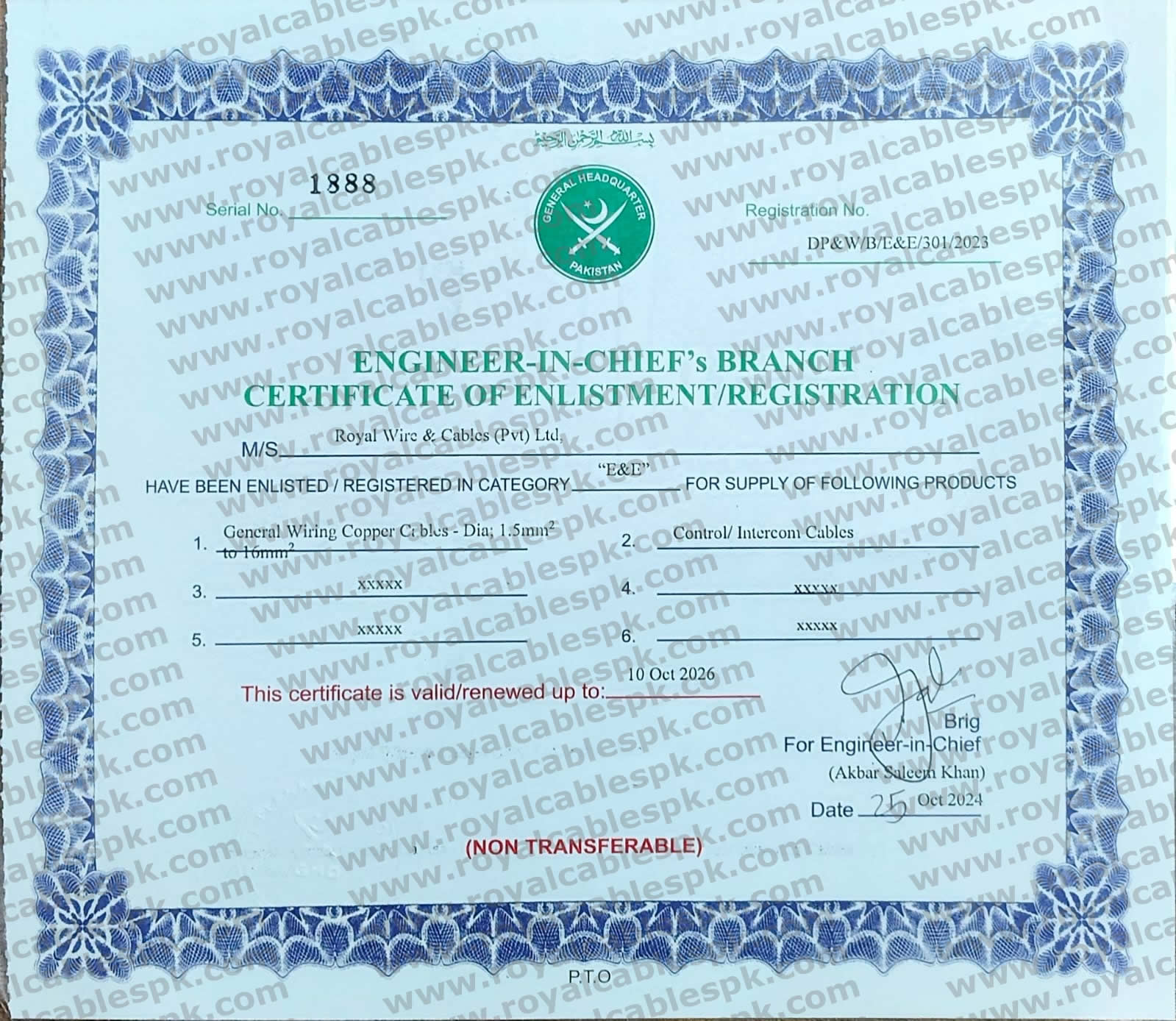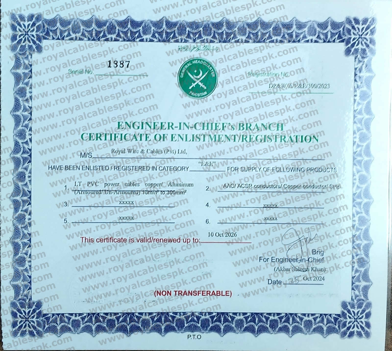 PVC insulated Copper Conductors and Aluminum Conductors of all types and sizes are available. Armored and non armored HT,LT. For your orders and for more information call at help line of Royal Cables 0311 1555606 , Email us at info@royalcablespk.com